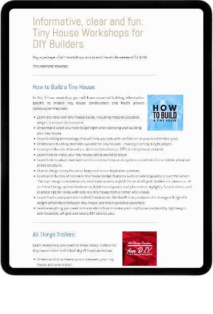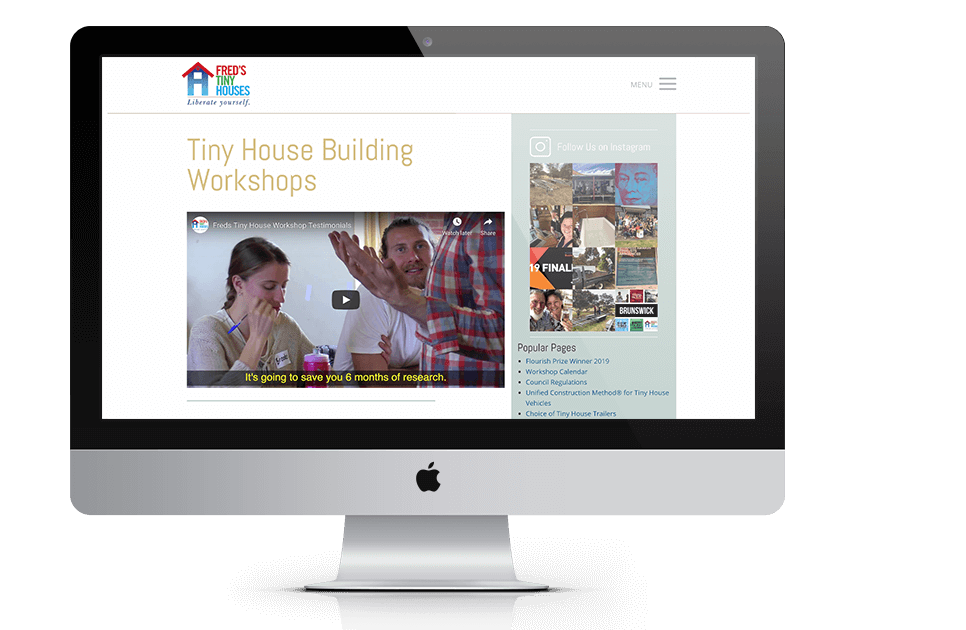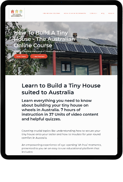 Fred and Shannon Schultz run an award-winning business conducting workshops across Australia as well as building tiny house trailers for people who want to downsize, rove freely and have an affordable living option. Fred also teaches DIYers how to build safe and affordable tiny houses on wheels. Fred’s workshops took him all over the country and unfortunately were constantly booked out. Many people were missing out on his knowledge and looking elsewhere for instructions on building their dream tiny home. We put our heads together with Fred and Shannon and worked on the Tiny House University so that Fred did not have to teach in person year-round and have more time to work on the business and spend time with his young family.
